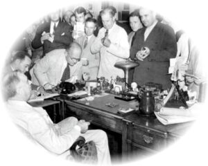 On August 14, 1939 he announced his intentions at a Campobello Island press conference. After being peppered with a number of questions ranging from the current “international situation” to matters of domestic concern, near the end of the press conference the press was practically begging for a headline. After replying, “I haven’t got a thing”, Roosevelt suddenly came up with a “swell story” that he had entirely forgotten: