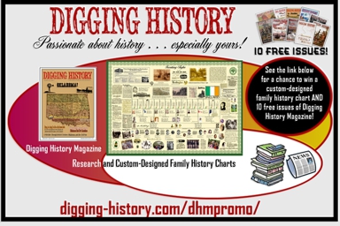 Thanks for stopping by! For more stories like this one, consider subscribing to Digging History Magazine. Purchasing a subscription entitles you to subscriber benefits (20% off all services, including custom-designed family history charts) AND a chance to win your very own custom-designed family history chart! Details here (or click the ad below).